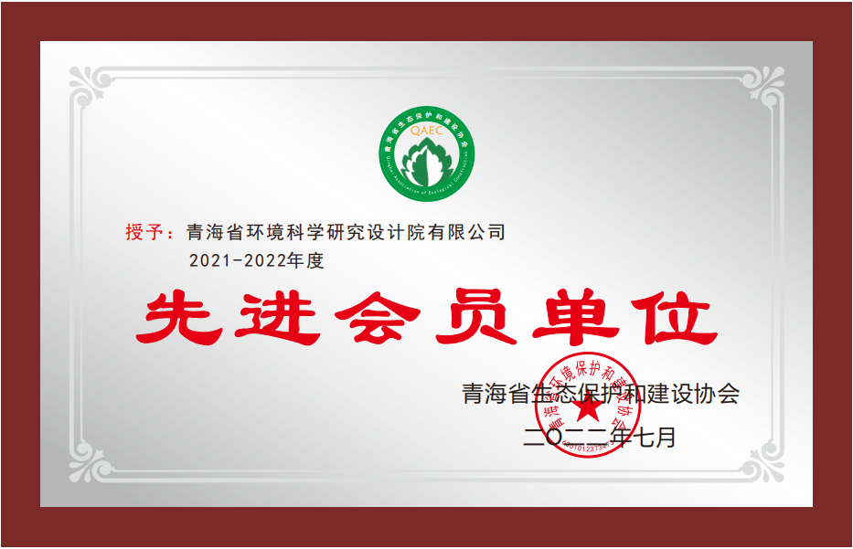 青海省生態(tài)保護和建設協(xié)會《先進會員單位》,青海省生態(tài)保護和建設協(xié)會頒發(fā),2022年7月