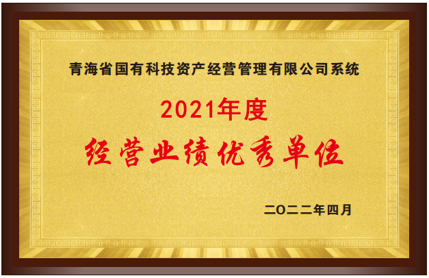 青海省國有科技資產經營管理有限公司系統(tǒng)“經營業(yè)績優(yōu)秀單位”,青海省國有科技資產經營管理有限公司頒發(fā),2022年4月