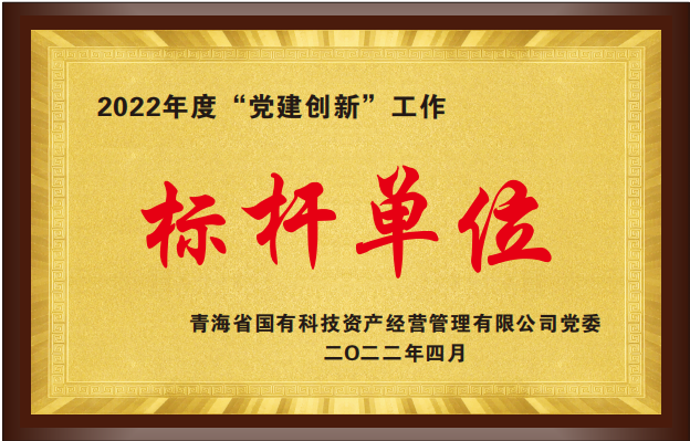 2022年度“黨建創(chuàng)新”工作標桿單位,青海省國有科技資產經營管理有限公司黨委頒發(fā),2022年4月