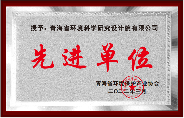 青海省環(huán)境保護產業(yè)協(xié)會先進單位證書,青海省環(huán)境保護產業(yè)協(xié)會頒發(fā),2022年3月