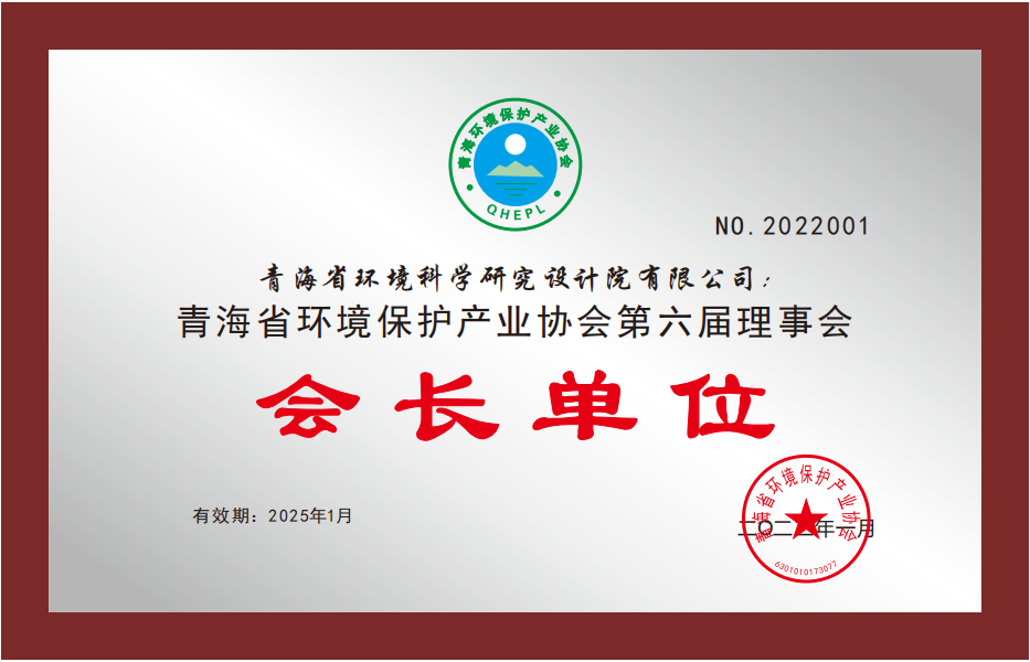 青海省生態(tài)保護和建設協(xié)會副會長單位,青海省生態(tài)保護和建設協(xié)會頒發(fā),2021年5月
